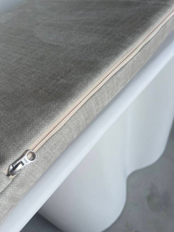 Dit luxe zitkussen maken wij voor jouw beton cire eettafelbank en past precies op de beton cire eettafelbank x Sinem. We maken jouw kussen op maat en kunnen elk formaat en elke vorm voor jou maken.